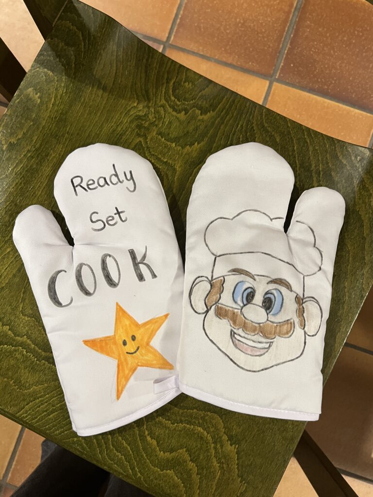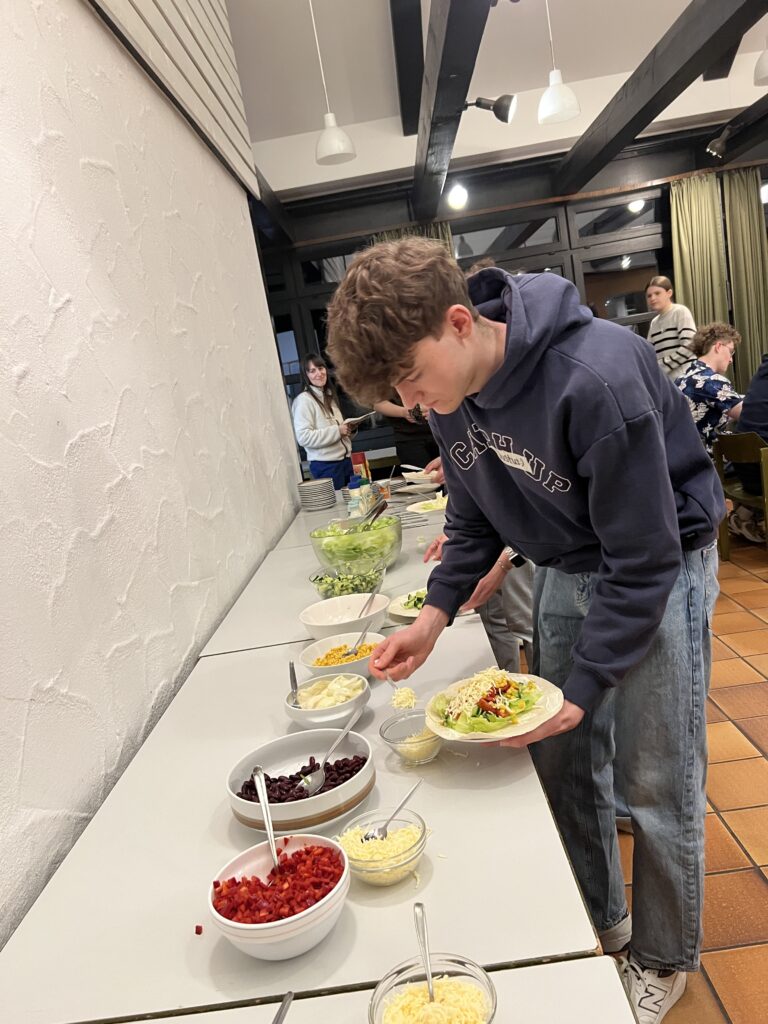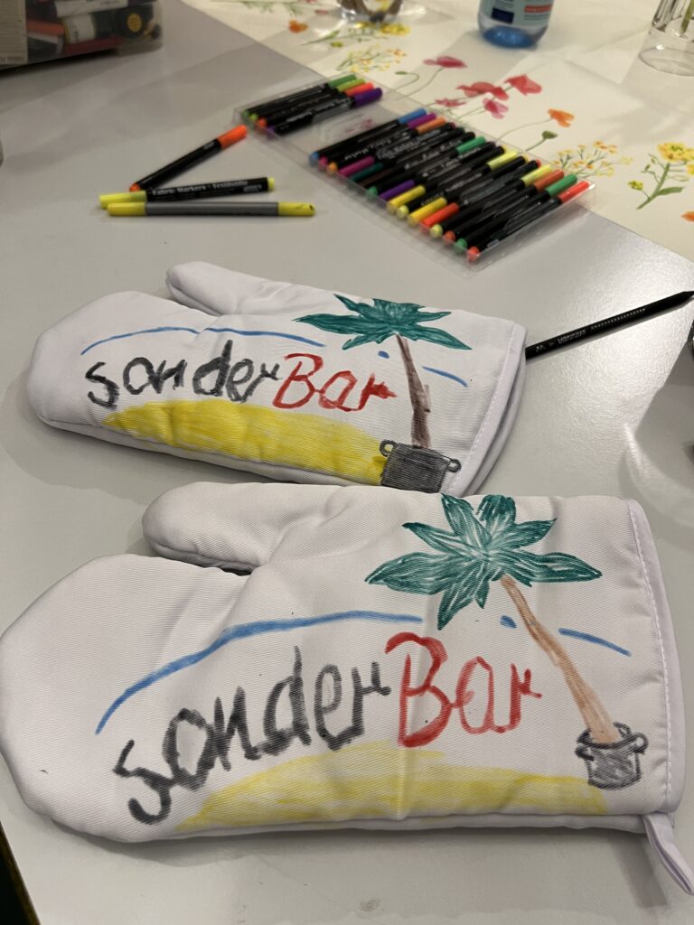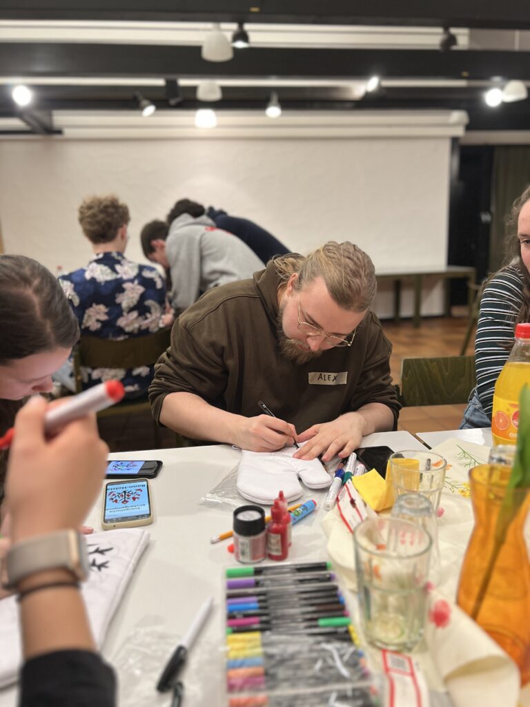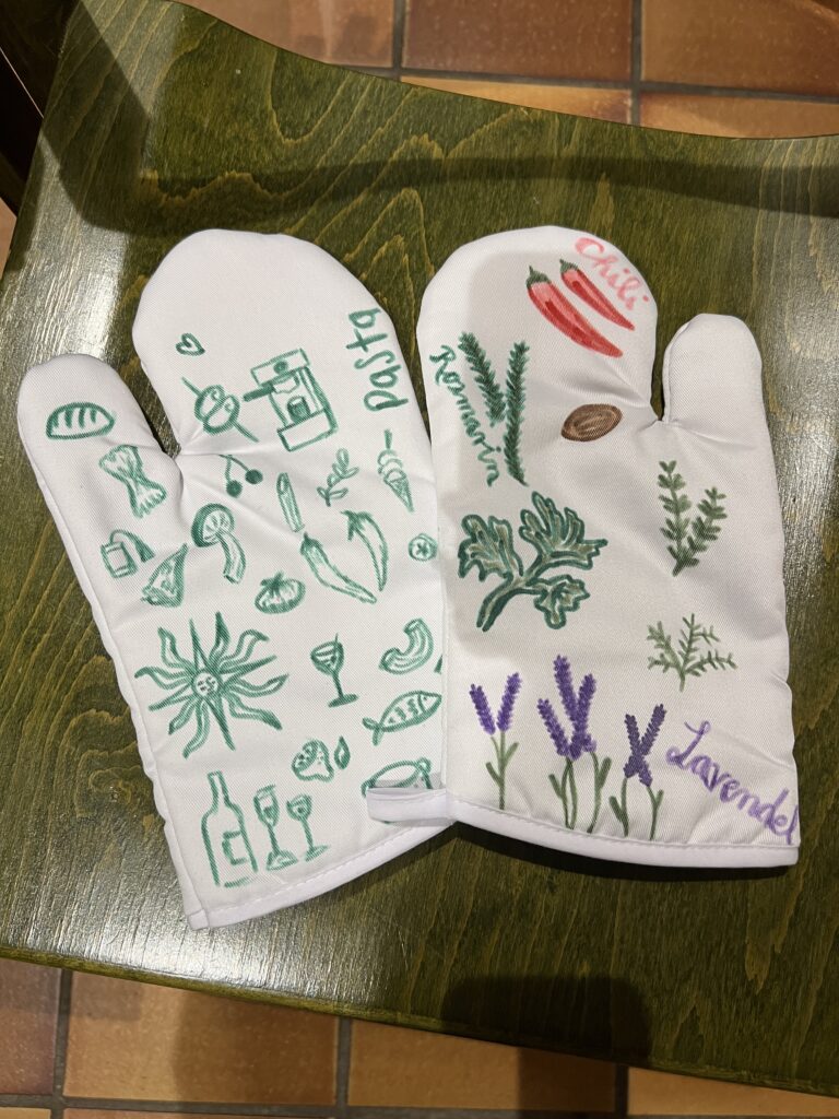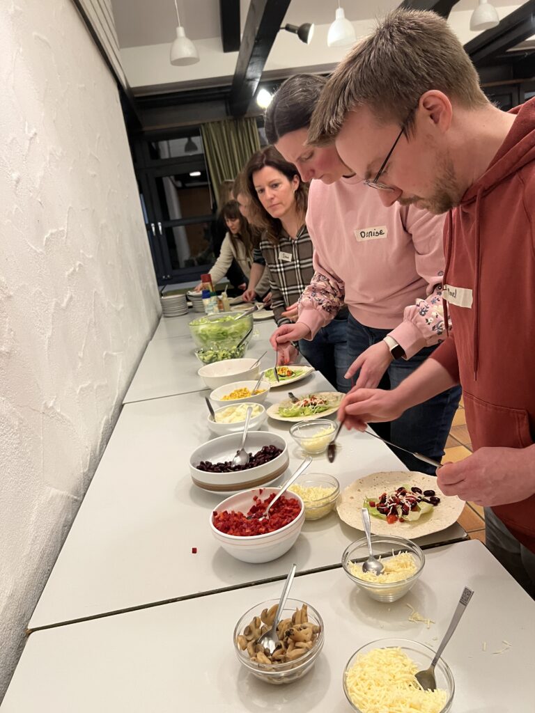 Auch der gemeinsame Teil kam beim Auftakt nicht zu kurz: Beim anschließenden Essen konnten sich alle Teilnehmenden ihre eigenen Wraps zusammenstellen und in lockerer Atmosphäre ins Gespräch kommen. Kreativ wurde es zudem beim Gestalten der Team-Ofenhandschuhe, die nun jedes Team individuell repräsentieren und sicherlich bei den kommenden Kochabenden zum Einsatz kommen werden.